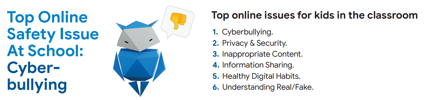 Furthermore, teachers were asked to fill out a Google Form. According to the survey, cyberbullying is the top online issue for students, ahead of privacy, inappropriate content, and other concerns.